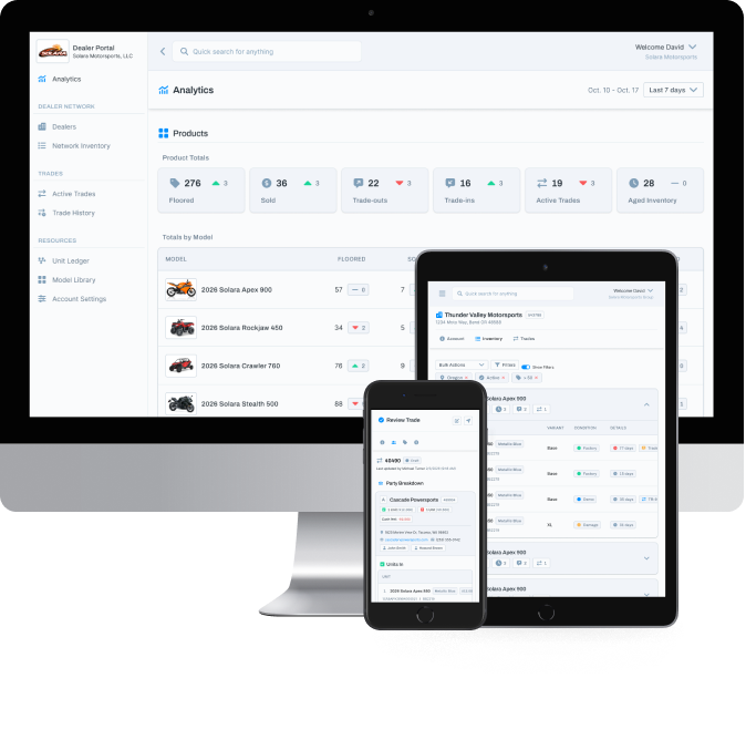 Stagnant inventory puts floor plan pressure on your dealers and pressure on your relationship with them. The Trade Tool clears it — fast, structured, and inside your portal.
